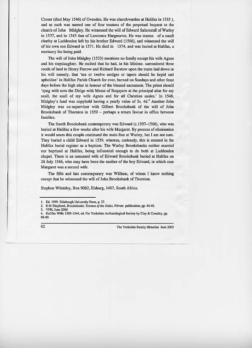 Two items concerning the Brooksbanks and including the Midgleys' of