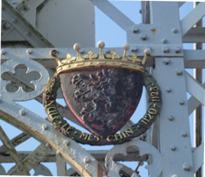 < Arms of Ranulf le Meschin 3rd earl of Chester 1120. These arms are on the Queen's Park footbridge which spans the River Dee (1883). However the tinctures are incorrect.