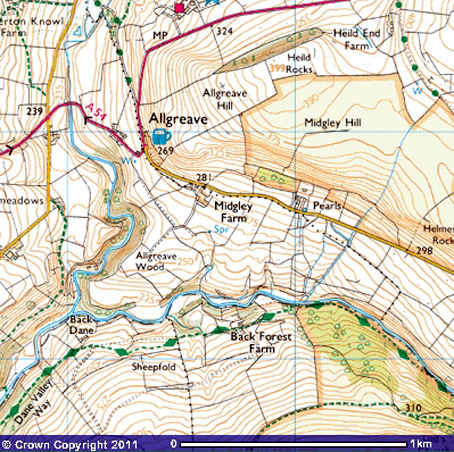 During the second half of the 1300's Prince Edward 'The Black Prince' (Prince of Wales, 1343) held the lordship of Macclesfield in East Cheshire. Apart from the parish of Macclesfield this also included the manor forest of Macclesfield and six surrounding demesne pastures including vaccaries or cattle studs. One of these cattle studs was the Midgley vaccary. The site of this vaccary can be located today by Midgley Farm and Midgley Hill in the Dane Valley, north east of Dane Bridge.