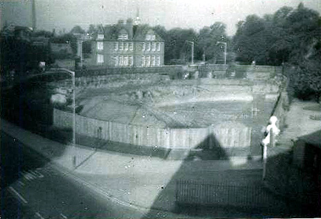 ![]() 8. Main drain of the arena with the then telephone exchange in the background. |