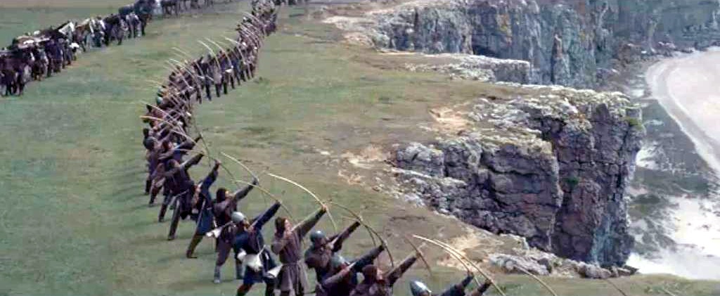 Proclamations nailed to a tree are an error, particularly penned in modern English. Virtually nobody except the clerics could read and then it was exclusively in Latin. Proclamations issued by the sheriff of each county would be read aloud on market days in the county market place and thereafter news would have travelled orally. The cliffs of Pembrokeshire, South Wales are no substitute for the chalk cliffs of Dover, while the culminating battle seems to be a combination of the battle of Hastings and the Normandy D-Day landings. On the plus side, scenes are immersed in a detailed and realistic visual treat of 'medieval' ambience whilst many castles and backdrops are cleverly incorporated care of C.G.I. Why the film was given the title 'Robin Hood' is a little difficult to understand, apart from the expensive and gratuitous battle scenes, perhaps it should have been titled something like 'Medieval Outlaws' and been made into a tele-visiual extravaganza. The film hyperbole claimed that we have all been 'waiting decades' for this film, but if this was a 'prequel', we can only hope that the sequel has more than 48 hours spent on the script and Robyn gets a bit of humour back into his dialogue. Perhaps a few Seamus Bondian quips wouldn't go astray, after all, if you are going to present fiction you may as well make it entertaining.