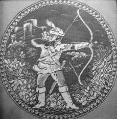 The film lacks any genuine English scenery, being mostly filmed in the back-blocks of Burbank Studios and the 2200 acre Bidwell Park, Chico, California, 100 miles north of Sacramento and 475 miles N.W. of Los Angeles. Here large oaks and sycamore trees grow in an otherwise dry environment, amply assisted for the film, with suitable rock and tree stumps imported for the effect. Foregrounds were real whilst backdrops, such as castles, were matte painted on glass. Olivia de Havilland played Marian. This folk name is not mentioned in the early English ballads at all, nor does the balladic Robyn have any romantic involvement, these are later pieces cobbled onto the oral histories, plays and ballads beginning in the1600's and reaching their zenith in printed form during the 1800's. One interesting item in the film is the fact that Olivia de Havilland's horse later became Roy Roger's 'Trigger'.1 The 'splitting of the arrow' too was shown incorrectly. It is correctly called the 'splitting of the wand' whereby the wand is stuck vertically into the ground. Trying to spilt an arrow 'end on' is nigh impossible as was demonstrated in a popular television programme, Mythbusters, yet even they were trying to recreate the filmic version of the event. In the 1938 film a mechanical device was used to aid in this visual effect. In my informed opinion the Hollywood film industry, primarily a machine for producing passive entertainment, has added to the storm of misinformation regarding the origins of the inspirational character, and this continues in the more recent spate of films. The English need to seriously retake control of this runaway locomotive.