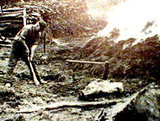 in a band of about 35cm in thickness. Wood for preparing the charcoal was used
