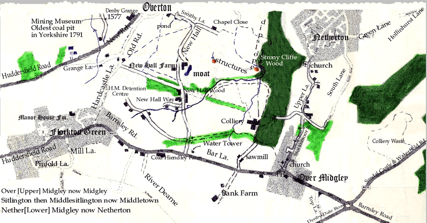 The manor of Midgley which lay in the parish of Thornhill is recorded by the