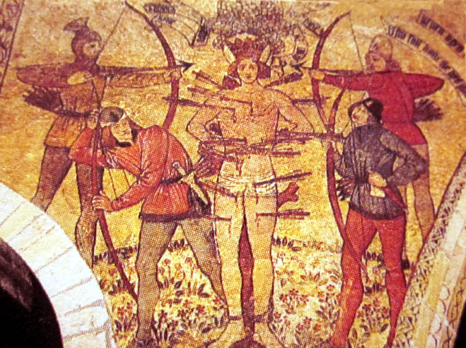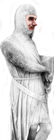 bears the following inscription :- Pontefract WHAT ROBYN HODE THE KNIGHT WOULD HAVE LOOKED LIKE IF HE HAD AN EFFIGY: Unfortunately there is no effigy of Robyn. Note that the chain-mail coif may represent the 'hood' so often referred to in the Geste. In all likelihood he would have sported a moustache, popular throughout the early medieval period. Recent DiscoveriesIn March 2009 Dr. Julian Luxford of St. Andrews University in Fife, Scotland, announced the finding of a manuscript note which he estimates to have been added to the document by an unknown monk sometime in the 1460's. One of the points made in the short note, which mentions 'Robyn Hode', makes it clear that Robyn was not well thought of in some sections of English society. The tenor of the note indicates that the monk was using hearsay when it stated that it was 'according to popular opinion'.