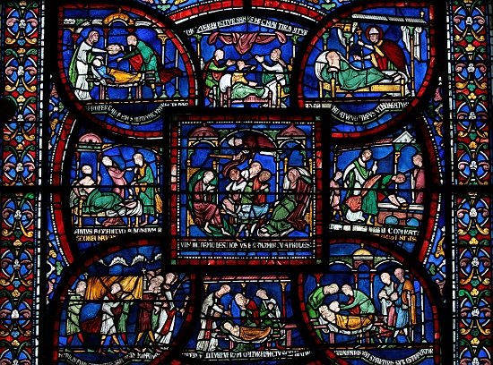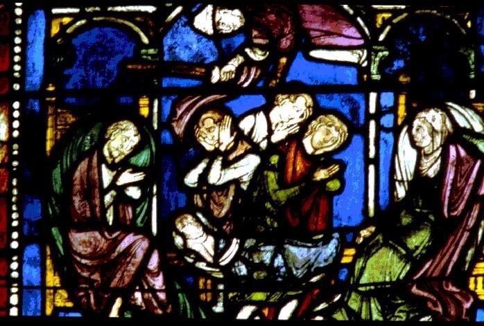 ^ Medieval window fragments, Thornhill parish church.
