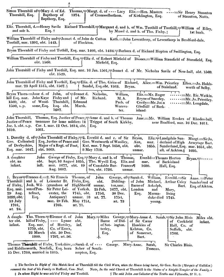 : The children of John Thornhill of Fixby and Elizabeth Grice : 1. Bryan b. 1528 d. aft. 1567 Much later in the early 1800's Thomas Thornhill is described as the absentee landlord of Fixby5 During the 1881 census a Midgley family was living at Fixby. [Fixby Hall is now a golf club]