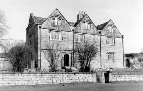 Hall, one time residence of a branch of the Savile family [note arms on the gate].